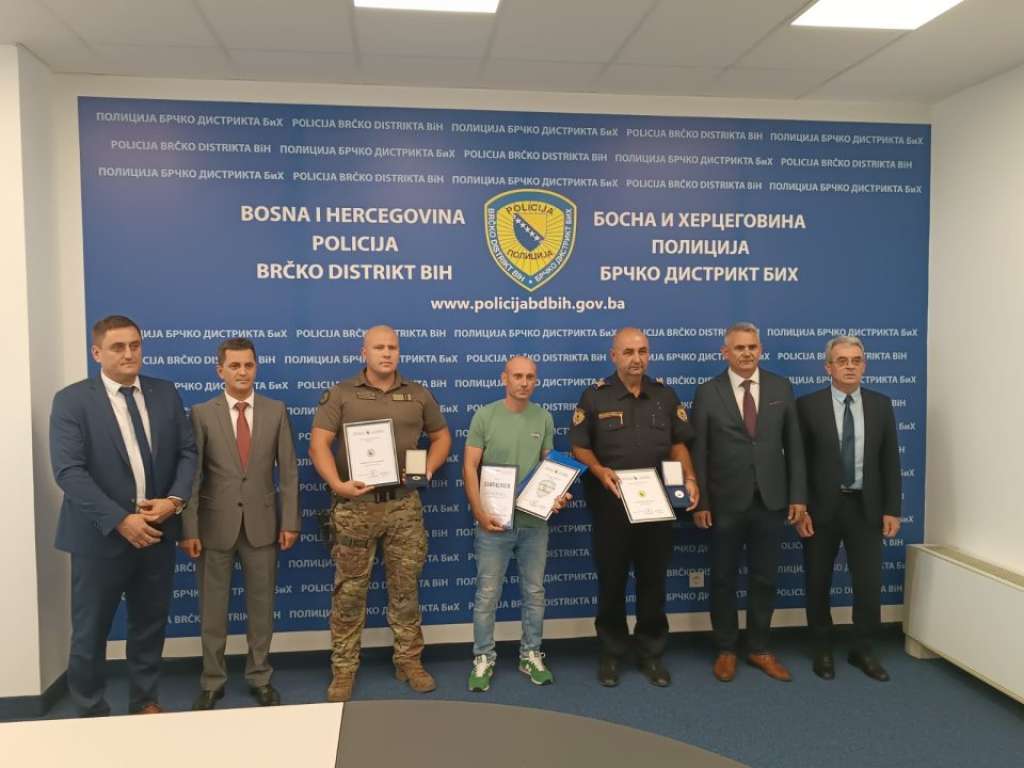 Gradonačelnik Brčko distrikta BiH Siniša Milić i šef Policije Brčko distrikta BiH Goran Pisić danas su uručili priznanje “Zlatna policijska značka” policijskom službeniku Abidu Martinoviću, te zahvalnicu građaninu Elvisu Kadiću koji su djelujući zajedno dali poseban doprinos u zaštiti i očuvanju ljudskih života dana 14.08.2024. godine kada su spasili dvoje djece od utapanja u rijeci Savi.