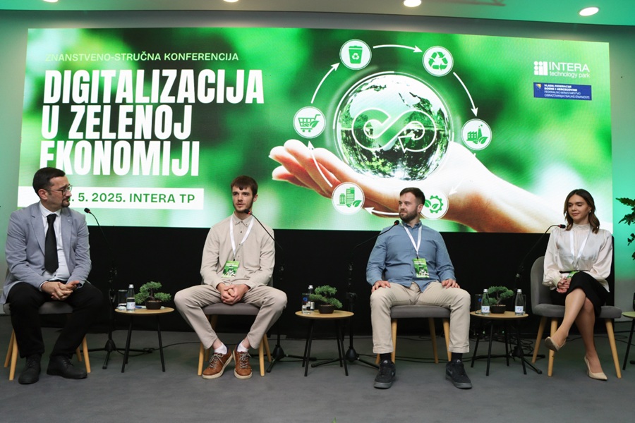 U prostorijama INTERA Tehnološkog Parka u Mostaru održana je znanstveno-stručna konferencija pod nazivom ‘’Digitalizacija u zelenoj ekonomiji’’, koja je okupila vodeće stručnjake, predstavnike akademske zajednice i realnog sektora s ciljem zajedničkog promišljanja održive budućnosti kroz uporabu digitalnih tehnologija.