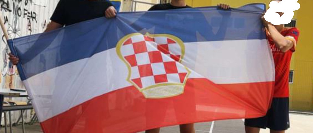 Na fotografiji snimljenoj na Sportskom centru u Stocu, vidimo skupinu djece islamske vjeroispovijesti koja drže zastavu Herceg-Bosne — ali okrenutu naopako, uz poruku “Victory Royale” nad glavama. “Victory Royale” je izraz iz popularne videoigre Fortnite, i označava pobjedu u igri, odnosno kada igrač ili tim ostane posljednji preživjeli u meču (od 100 igrača, uobičajeno).