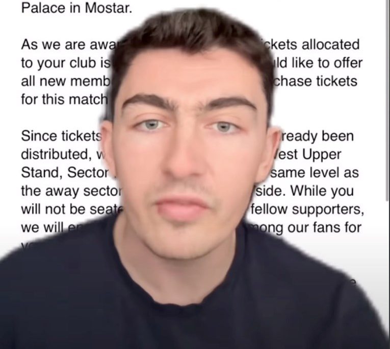 “Moram s vama podijeliti što je Zrinjski napravio. Pokazali su da su velik klub. Nisu morali, ali izašli su u susret navijačima Crystal Palacea i zato zaslužuju ogromno poštovanje. U Mostaru ćete vidjeti navijače Palacea i Zrinjskog kako zajedno piju, druže se i uživaju u nogometu”, rekao je engleski influencer Jack Charlton, kojeg na Instagramu prati 69 tisuća ljudi.