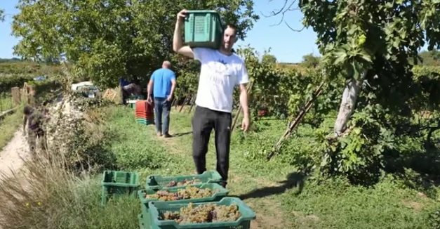 Ante Vučić angažirao je obitelj, prijatelje, kumove, zetove. Svi su u vinogradu na berbi grožđa jer ono je ove godine rodilo kao ludo.Kada smo snimali kadrove