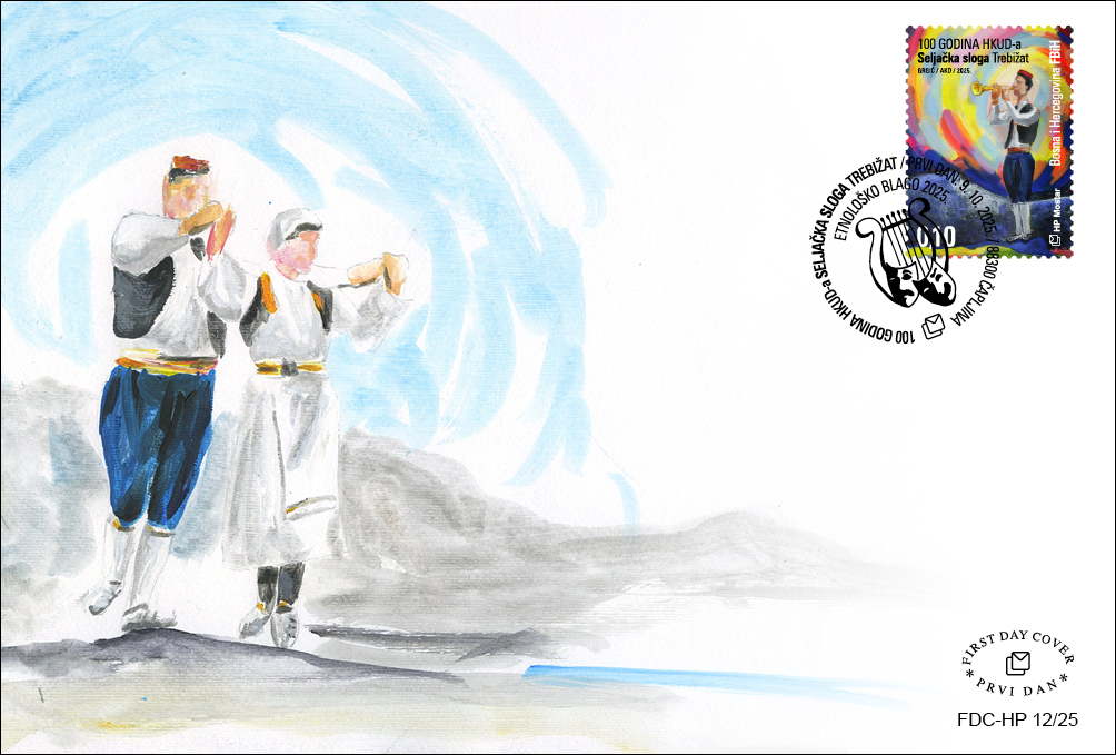 Motiv na poštanskoj marki predstavlja trubača u tradicionalnoj hercegovačkoj narodnoj nošnji u kojoj je nastupao Puhački orkestar i folklor HKUD „Seljačka sloga“. (Trpimir Grgić)