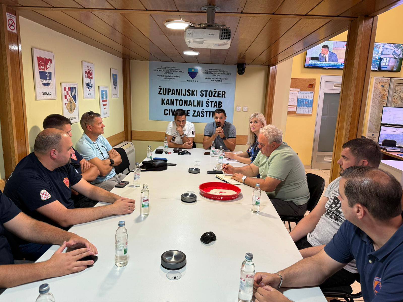 U prostorijama Operativnog centra civilne zaštite HNŽ održan je sastanak s koordinatorom gosp. Marinkom Petrićem, pilotom Air Tractora, članovima Uprave CZ HNŽ te koordinacijskim članovima civilne zaštite ŽZH.