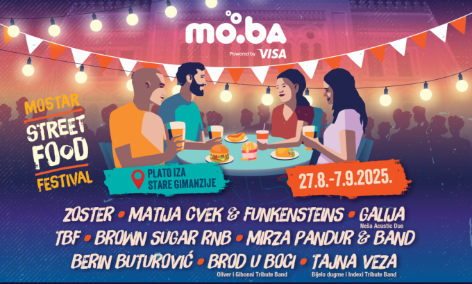 10. rujna 2025.Nastupom grupe Zoster, na platou iza Stare gimnazije u Mostaru sinoć je otvoreno četvrto izdanje Moba Street Food Festivala powered by Visa. Festival...