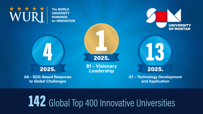 31. srpnja 2025.Prema najnovijem izdanju prestižne svjetske rang-liste World University Rankings for Innovation (WURI) za 2025. godinu, Sveučilište u Mostaru ostvarilo je izniman rezultat zauzevši...
