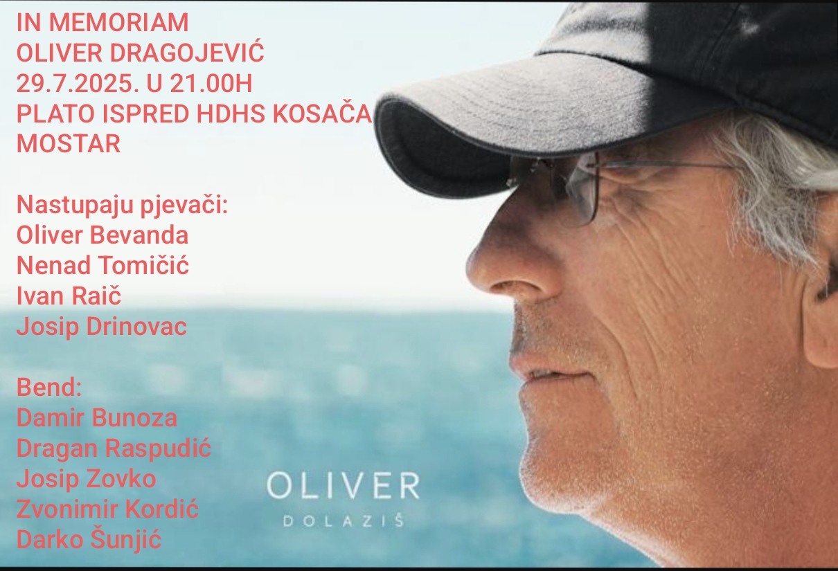 Sutra, 29.7..2025. u 21.00h na platou ispred HDHS Kosača održat će se koncert povodom godišnjice smrti Olivera Dragojevića.