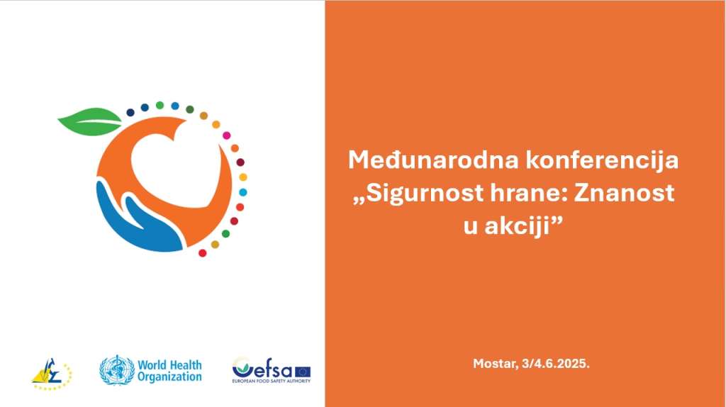 Stručnjaci iz Bosne i Hercegovine, zemalja iz regije i predstavnici Svjetske zdravstvene organizacije (WHO), Organizacije za hranu i poljoprivredu UN (FAO) i Europske agencije za sigurnost hrane (EFSA) okupit će se na međunarodnoj konferenciji “Sigurnost hrane: znanost u akciji”, koja će se održati 3. i 4. lipnja u Mostaru.