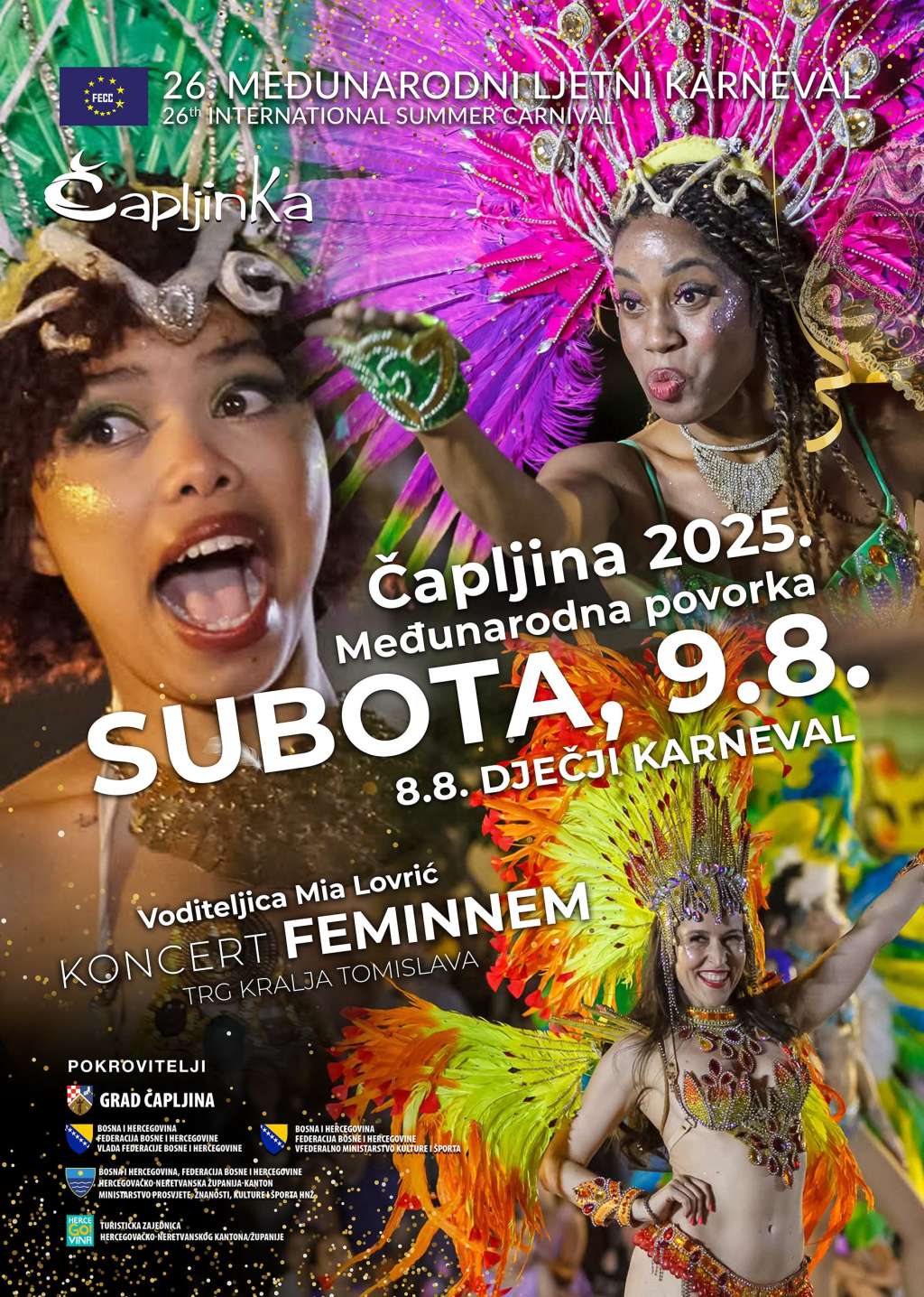 Međunarodni ljetni karneval Čapljina održat će se u petak i subotu, 8. i 9. kolovoza, a riječ je o jedinstvenoj i prepoznatljivoj manifestaciji koja je već dugo ucrtana u turističku kartu važnih karnevalskih i kulturnih zbivanja Europe.