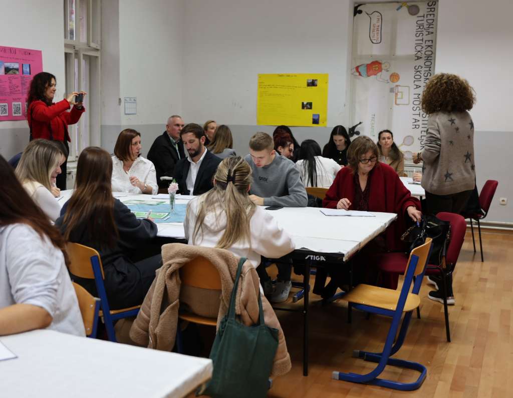 U Srednjoj ekonomskoj i ugostiteljsko-turističkoj školi Mostar u ponedjeljak je, u organizaciji Međunarodne organizacije rada (MOR), održana promotivna radionica pod nazivom “Osnove poduzetništva: Razvijanje poduzetničkih vještina u srednjem stručnom obrazovanju”.
