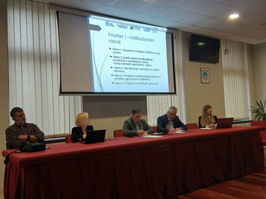 Vedran Šimunović, direktor INTERA Tehnološkog Parka predstavio je primjere dobre prakse u području razvoja kapaciteta radne snage, uključujući programe obuka, mentorstva i suradnje s lokalnim poduzećima a Alisa Gekić direktorica Poduzetničkog centra LiNK podijelila je iskustva u provedbi mjera samozapošljavanja te programe podrške poduzetnicima. Nakon toga direktor REDAH-a Ivica Sivrić predstavio detaljnu analizu tržišta rada u Mostaru, naglašavajući ključne nalaze i preporuke za unapređenje politika zapošljavanja.