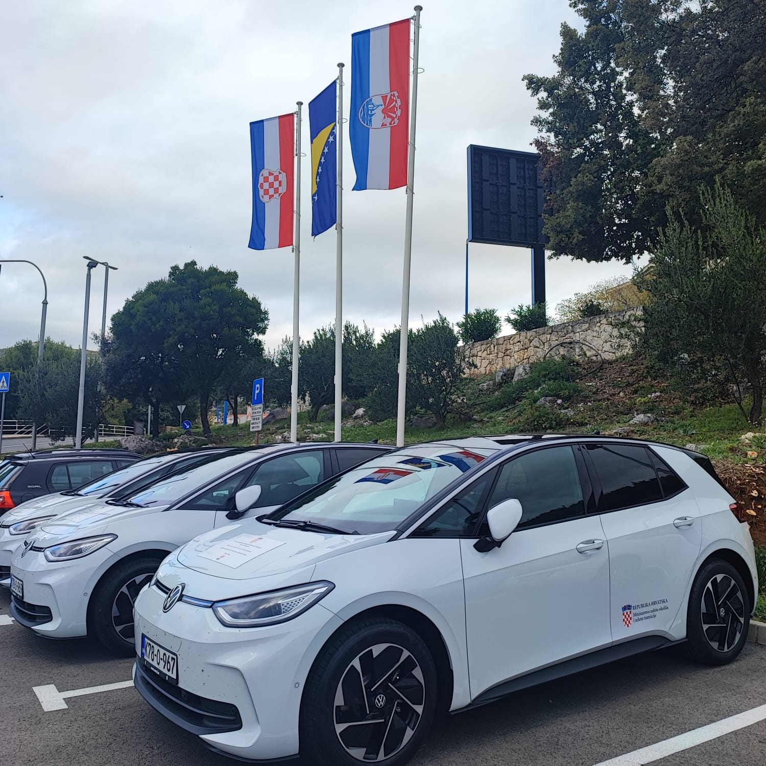 U sklopu Poziva Ministarstva zaštite okoliša i zelene tranzicije Republike Hrvatske za dodjelu financijskih sredstava za projekte ublažavanja i prilagodbe klimatskim promjenama u Bosni i Hercegovini, Općini Neum su danas isporučena tri vozila na električni pogon, a uskoro se očekuje i instaliranje četiri punjača za električna vozila koja će biti postavljena na području općine Neum.