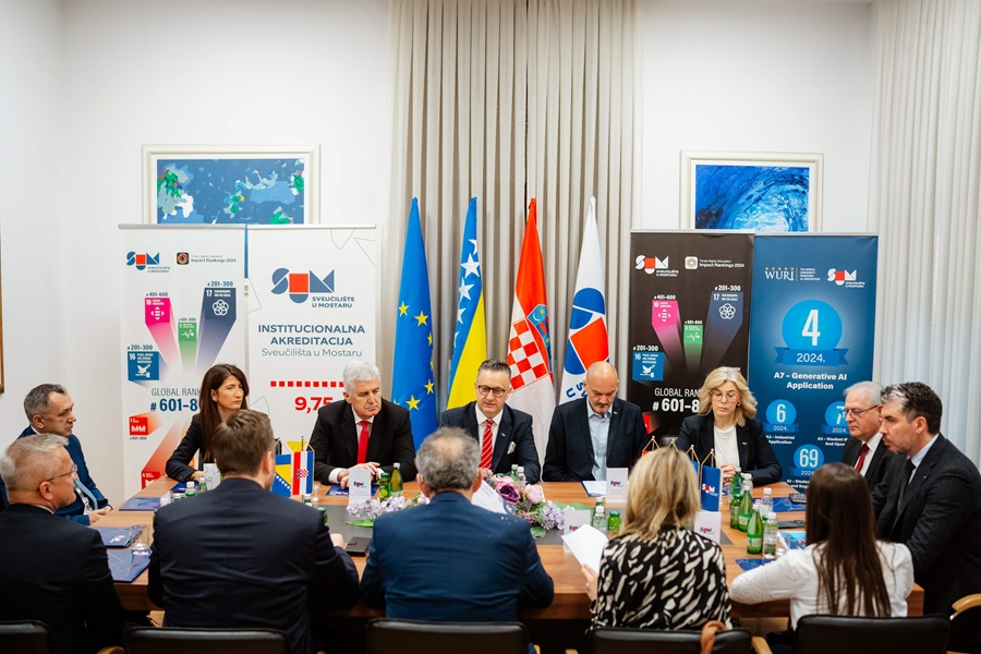 Suradnja Vlade Republike Hrvatske i Sveučilišta u Mostaru nastavlja se s naglaskom na daljnji razvoj, jačanje financijske stabilnosti i rješavanje aktualnih izazova kako bi se unaprijedio akademski i znanstveno istraživači rad te poboljšali uvjeti studiranja na Sveučilištu koje je središte visokog obrazovanja Hrvata u Bosni i Hercegovini, navodi se na službenoj stranici SUM-a.