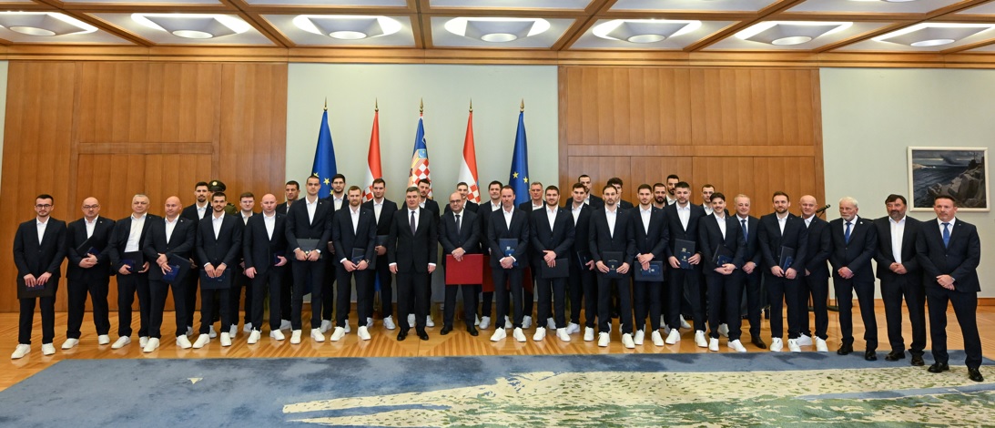 “Nema preko reda. Na kraju sve završi tamo gdje treba završiti kao posljedica znanja, truda, zalaganja, vještine, lukavosti i sportskog odnosa koji vas je doveo do svjetske medalja – srebra, kojeg Hrvatska dugo nije vidjela“, rekao je predsjednik Milanović poručivši im kako su sami podigli ljestvicu očekivanja što predstavlja prilično težak teret.