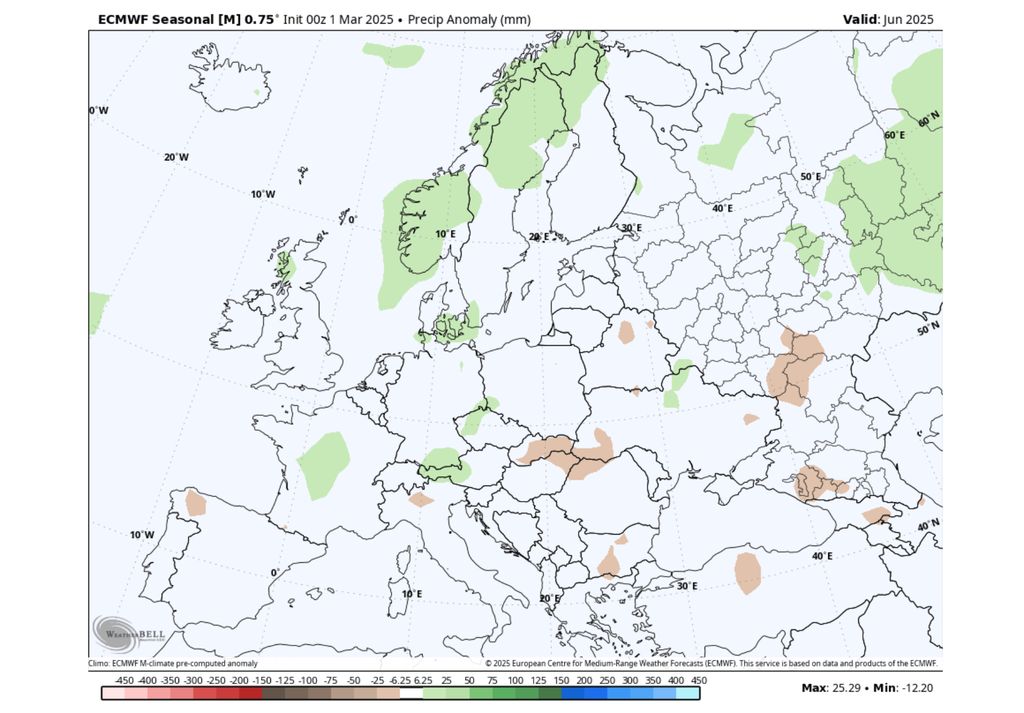 Nad Europom se očekuje više padalina početkom ljeta, ali kako dani odmiču, srednji i kasniji dijelovi ljeta bit će sušniji s većim šansama nego inače za toplotne talase.