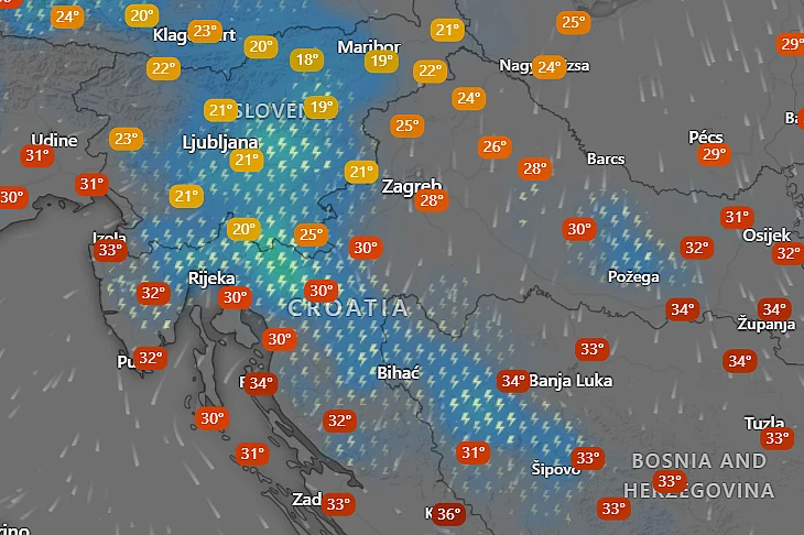 U Sloveniji i Hrvatskoj je izdano upozorenje zbog nadolazećeg nevremena praćenog pljuskovima i grmljavinom koje će se proširiti i na pojedine dijelove BiH.
